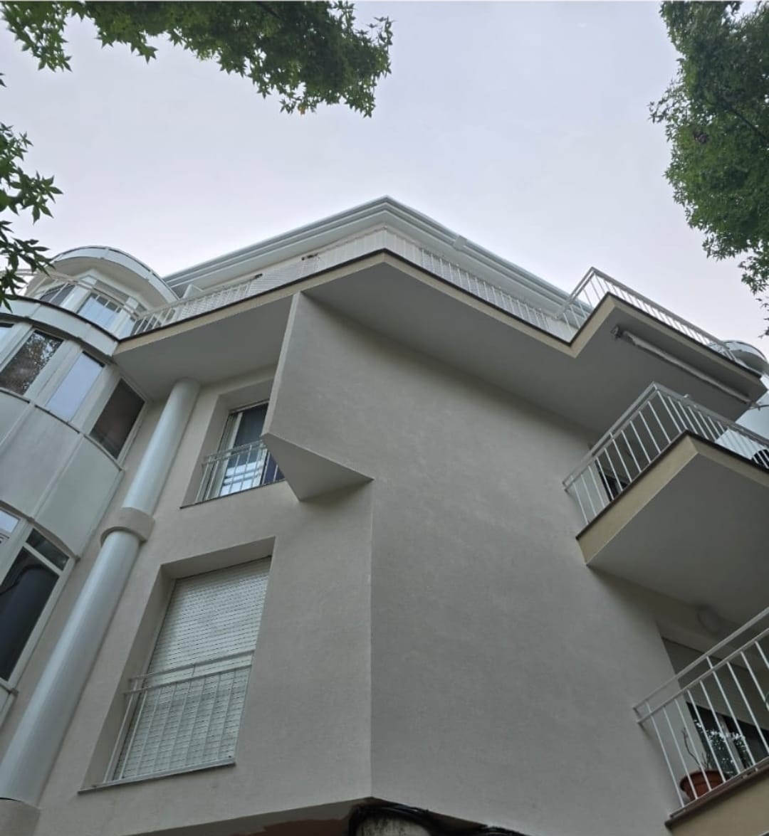 Renovación completa de la fachada deteriorada. Aplicación de revestimiento monocapa de alta resistencia que garantiza impermeabilidad, durabilidad y una estética impecable.
